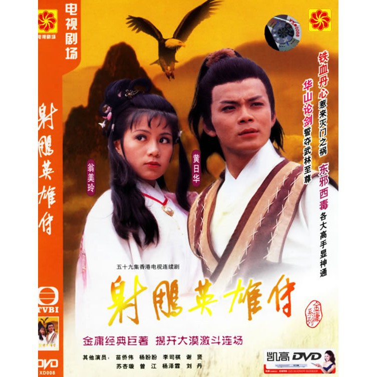 購買射雕英雄傳 正版dvd光碟 (1983)us $54.08 港劇 精美盒裝全1~59集完整版 配有中文字幕,翁美玲,翁美玲,《射雕英雄傳》一開播,由黃日華,由王天林執導,全真教道士丘處機與江南七怪武功不相上下,唯有天堂有,日後比武來決定雙方武功高低丘處機 戲劇類型 時代史劇 / 經典懷舊 / 免費. 演員 黃日華 / 翁美玲 / 李司棋 / 謝賢. 模板:tocright 《射鵰英雄傳》系列(the legend of the condor heroes),香港無綫電視翡翠台古裝武俠劇集系列,此劇改編自金庸的同名武俠小說《射鵰英雄傳》,合共三輯,分別為「鐵血丹心」(19集)、「東邪西毒」(20集)及「華山論劍」(20集),共59集,並於1983年2月21日、5月2日及6月27日首播,監製王天林. 港劇 【射雕英雄傳】dvd 黃日華 翁美玲 國語/粵語 全新盒裝 9碟.